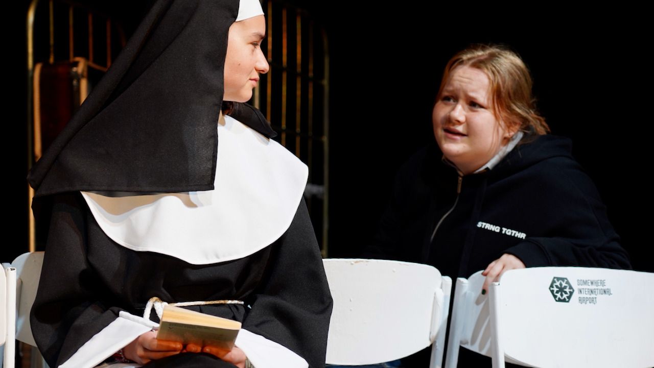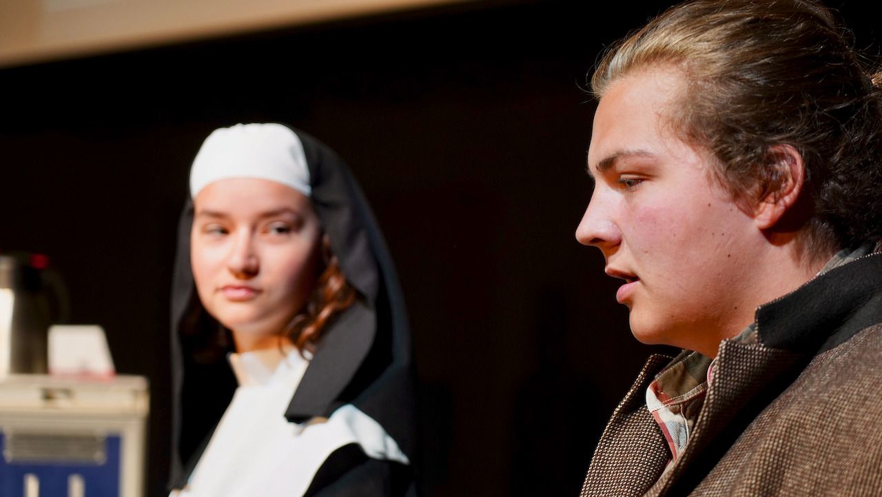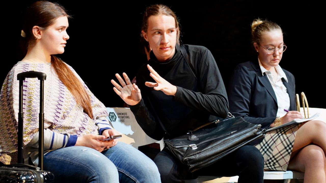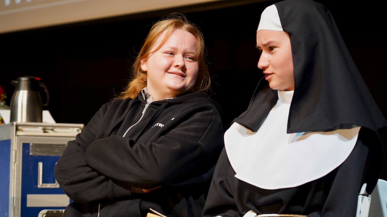 Am gestrigen 9. Juni feierte der Literaturkurs der Stufe 12 die Premiere seiner diesjährigen Inszenierung. Beinahe 200 Zuschauer:innen ließen sich schnell von der gesellschaftskritischen Kömodie mit Tiefgang, wie eine Zuschauerin das Stück charakterisierte, gefangen nehmen und verwöhnten die glänzend aufgelegte Schauspieltruppe mit viel verdientem Szenen- und begeistertem Schlussapplaus.