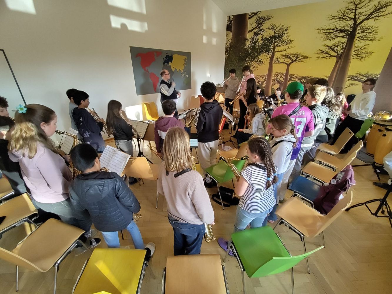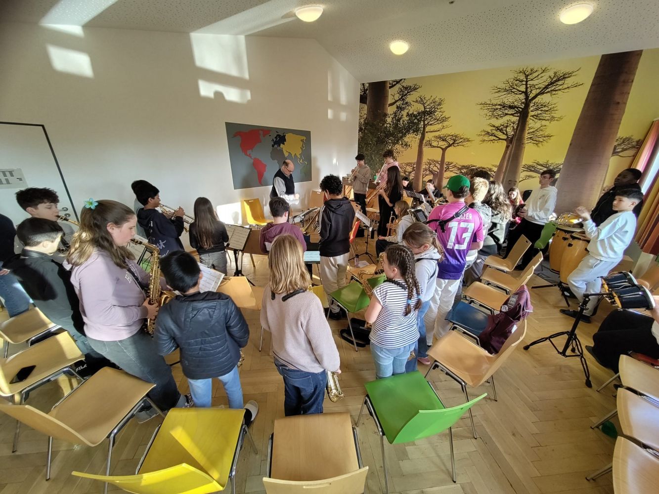 Als wir angekommen waren, wurde das Band-Equipment ausgepackt und unsere Probenräume spielfertig eingerichtet. Danach gab es Mittagessen und schließlich konnten auch die Zimmer bezogen werden. Im Anschluss fand eine erste Probe mit allen statt, die uns den Weg für die vor uns liegende Zeit wies. Am Nachmittag begannen die Stimmproben in den Kleingruppen, die effektiv und konzentriert verliefen. Nach einem guten und reichhaltigen Frühstück ging es am nächsten Morgen genauso konzentriert in den Kleingruppen weiter – unterbrochen von kürzeren Pausen und einem längeren Spaziergang am Nachmittag. Um 18.00Uhr gab es dann Abendessen und danach begann die Gesamtprobe, die - obgleich schon spät und am Ende eines arbeitsreichen Tages – effizient und in guter Stimmung verlief. Am Donnerstagmorgen schließlich konnten wir bei einer letzten Gesamtprobe die erzielten Fortschritte erkennen. Die Probenfahrt ist ein wichtiger Teil der Big Band Arbeit und jedes Jahr ein Höhepunkt auf den sich alle Teilnehmer immer wieder freuen. Auch die neu dazugekommenen Musiker wurden warmherzig in die Gruppe aufgenommen und haben begeistert musiziert.