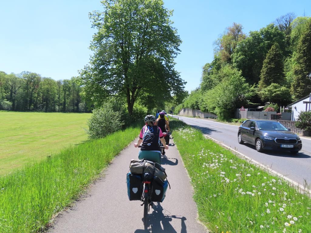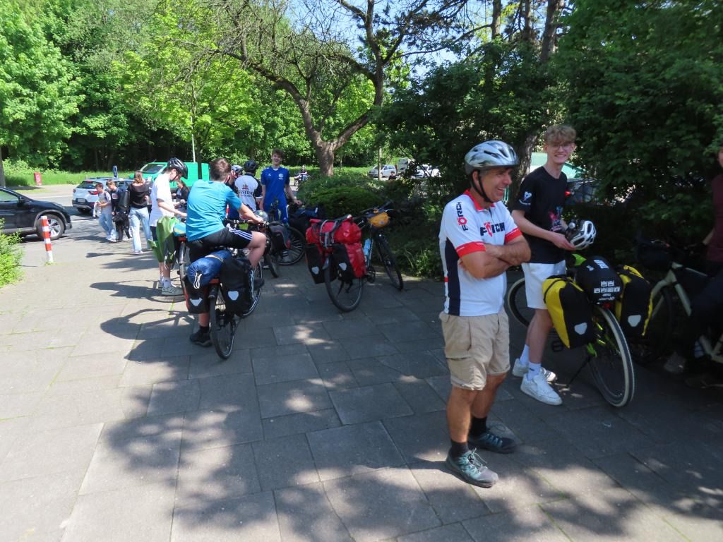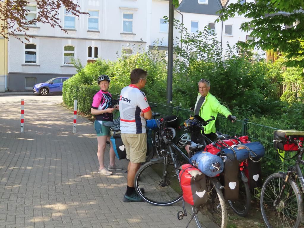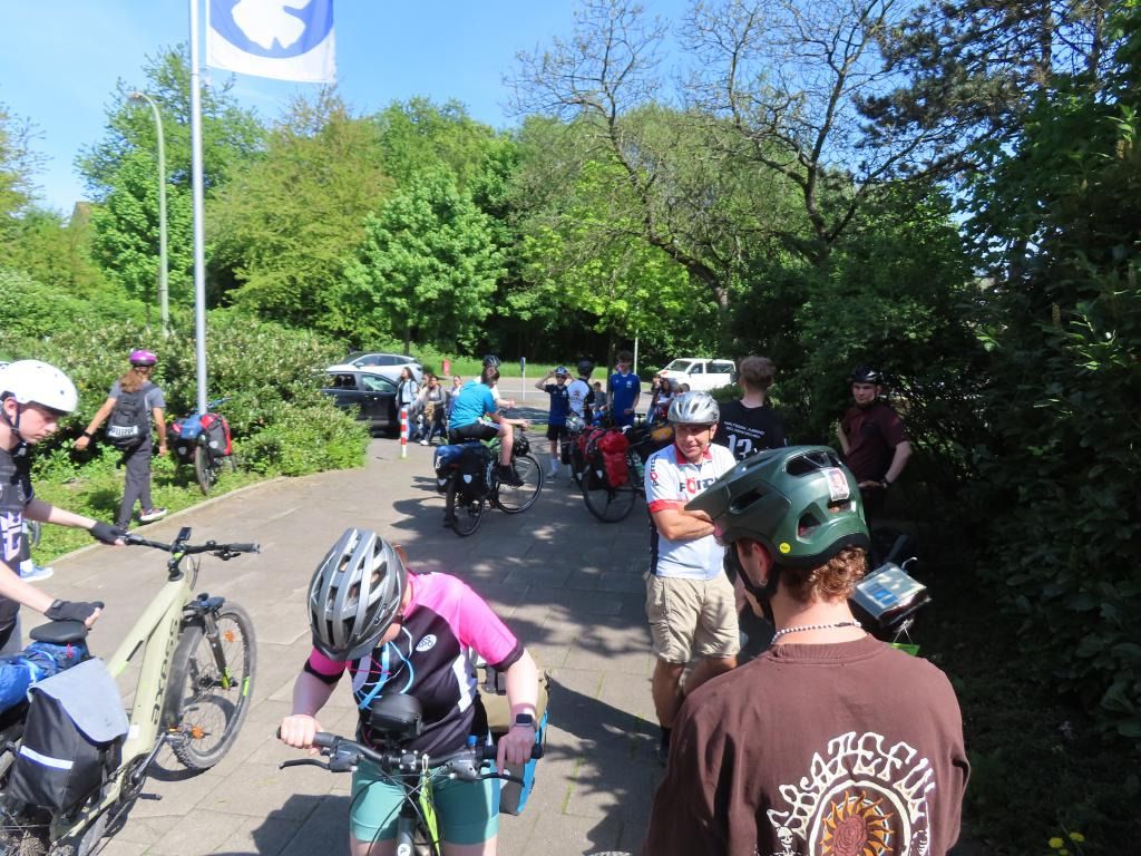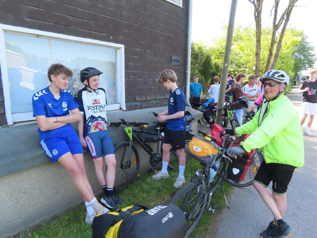 Diesmal wählten wir die etwas flachere Strecke über Leverkusen, Düsseldorf und Ratingen. Einige nutzen das Angebot und bestiegen schon unterwegs mit den Rädern die S-Bahn. So wurde die Fahrstrecke etwas abgekürzt. Viele fuhren aber auch „bis zum bitteren Ende“ und erreichten so am späteren Abend, meist gegen 21.00 Uhr ihr Zuhause. Je nach Länge der Rückfahrtstrecke hatten am Ende der Tour alle in etwa 160 Kilometer in den Beinen. Eine Leistung, auf die jede und jeder durchaus stolz sein kann. Ein riesen Lob und Dankeschön an alle, die sich auf diese Pilgertour eingelassen und die uns unterstützt haben. Es war großartig und am Ende war’s sogar eine Tour ohne einen einzigen platten Reifen…