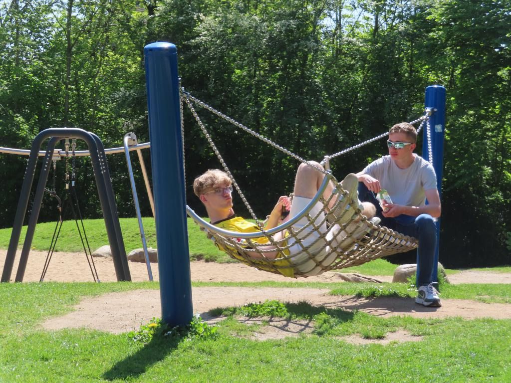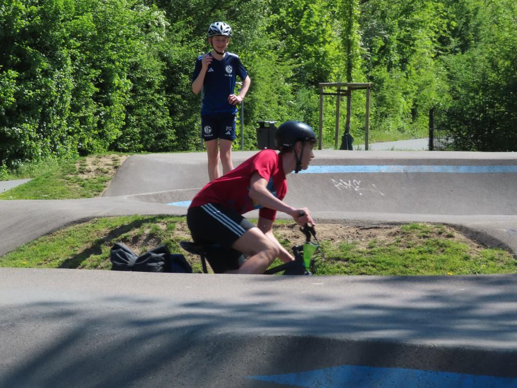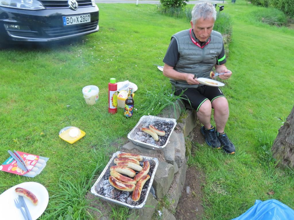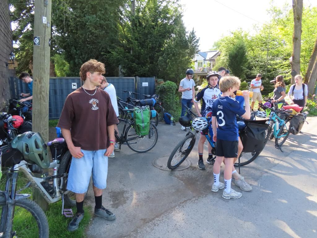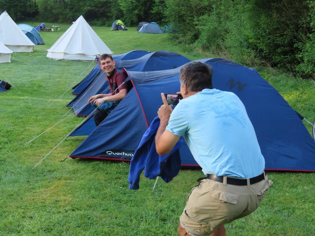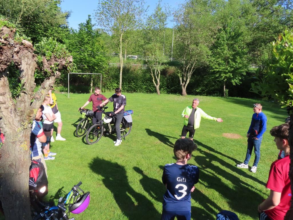 Die vollgepackten Fahrräder (KEINE E-Bikes!!! J) standen nach der Mittagspause vor der Schultür bereit. Neben dem persönlichen Gepäck, dass jede und jeder eigenständig transportieren musste, wurden auch noch die schuleigenen Zelte auf den Gepäckträgern verzurrt und so ging es gegen 14.45 Uhr los. Zunächst in Richtung Hattingen. Bei allerbestem Wetter war die erste, kurze Etappe perfekt zum „Einfahren“ geeignet. Auf dem Campingplatz Ruhrbrücke wurden wir sehr freundlich empfangen. Eine Wiese für unsere Zelte war bereits reserviert und so konnten wir nach dem Aufbau einen sehr entspannten Abend an den Ufern der Ruhr verleben. Vielen Dank an dieser Stelle an Frau Forch, die uns Grills, Grillgut und Getränke für diesen ersten Abend zum Campingplatz brachte!!! Wir waren bestens versorgt!