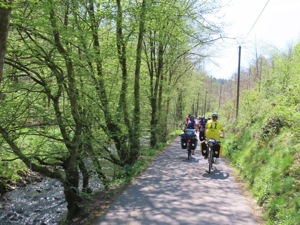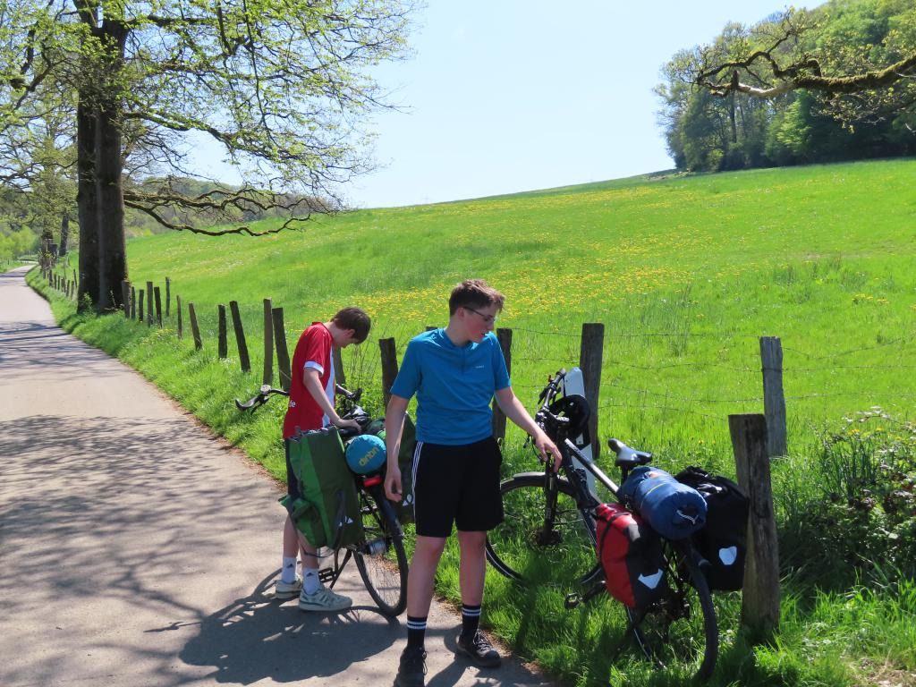 Der zweite Tourtag begann nach dem unerbittlichen Weckruf des Schulsozialarbeiters gegen 8.00 Uhr. Nach einem einfachen Frühstück wurde wieder alles verpackt und gegen 9.15 Uhr setzte sich unsere Truppe wieder in Bewegung. Jetzt ging’s zunächst in Richtung Wuppertal über eine ehemalige Bahntrasse. Einigen von uns ahnten an dieser Stelle bereits, was es bedeutete, dass die Tour uns ins BERGISCHE Land führte…