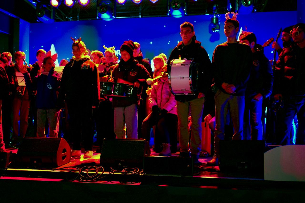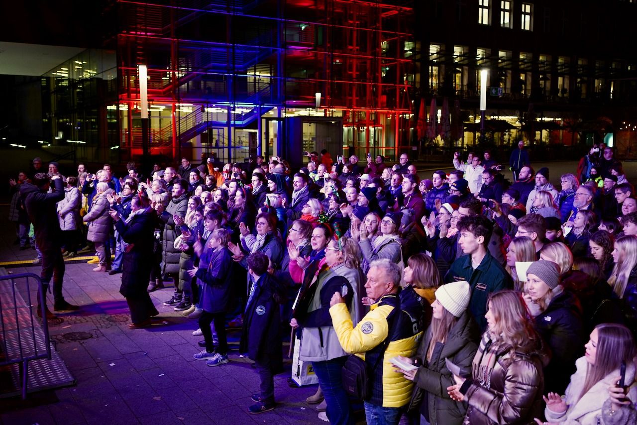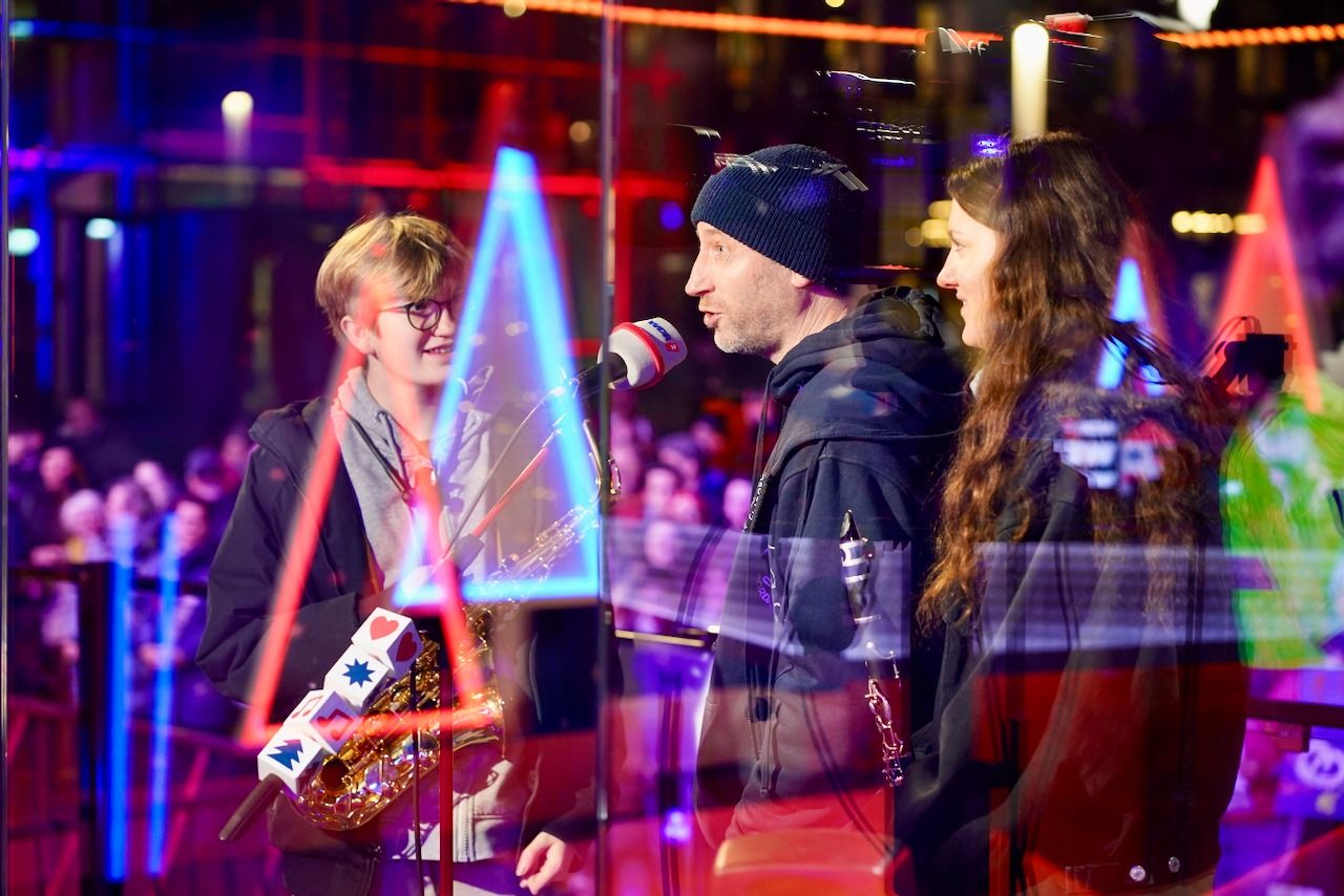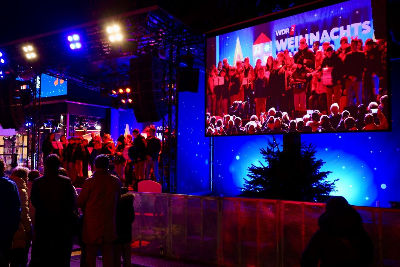 Am Dienstagmorgen, 16.12.2025, machte sich unsere Schulgemeinschaft in aller Frühe auf den Weg zum Burgplatz. Um 06.10 Uhr waren die Schulen in Trägerschaft des Bistums Essen im Rahmen des WDR 2-Weihnachtswunders live auf Sendung.