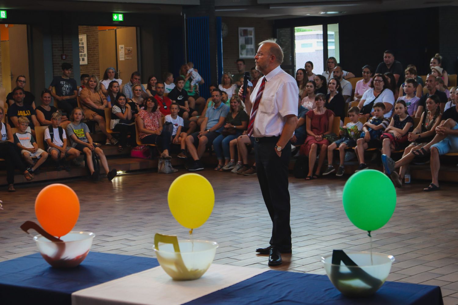 * Gerade noch haben die Abiturienten glücklich, erleichtert und wahrscheinlich auch ein wenig wehmütig die Aula am Stoppenberg verlassen, schon stehen die neuen Schülerinnen und Schüler erwartungsvoll in derselben Aula. Beim Kennenlernnachmittag wurde heute das Geheimnis gelüftet, wer in welcher Klasse ist. Außerdem konnten sich die neuen Klassenlehrerinnen sowie Mitschülerinnen und Mitschüler schon ein wenig miteinander vertraut machen.