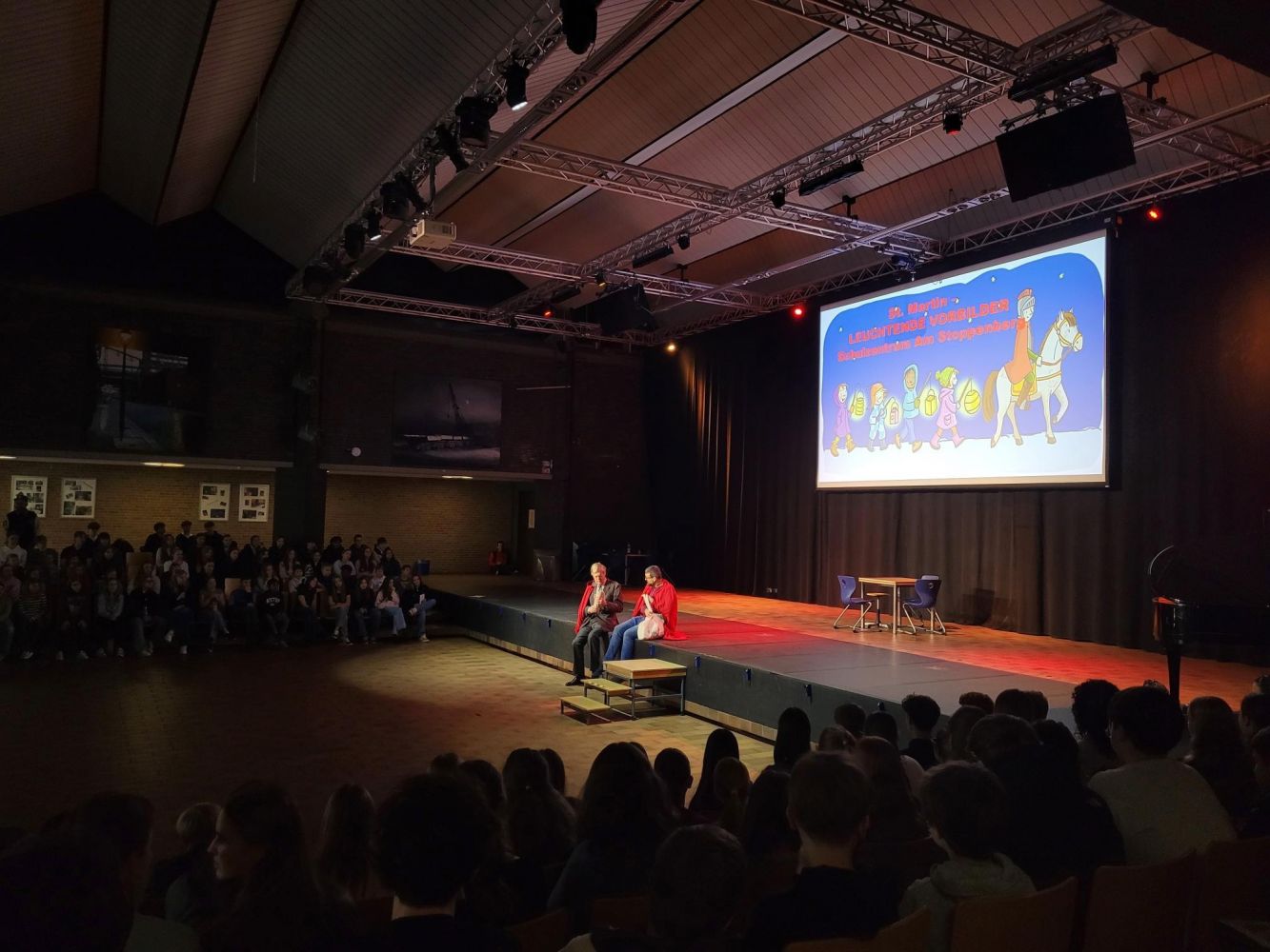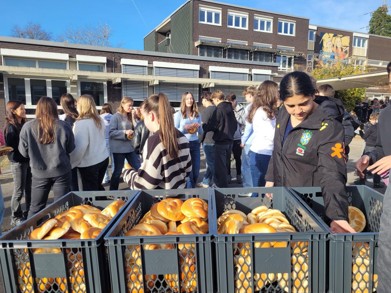Unter dem Leitgedanken „Hoffnung schenken“ erhielten alle Schülerinnen und Schüler eine Martinsbrezel und konnten freiwillig eine Spende für das WDR 2-Weihnachtswunder geben.