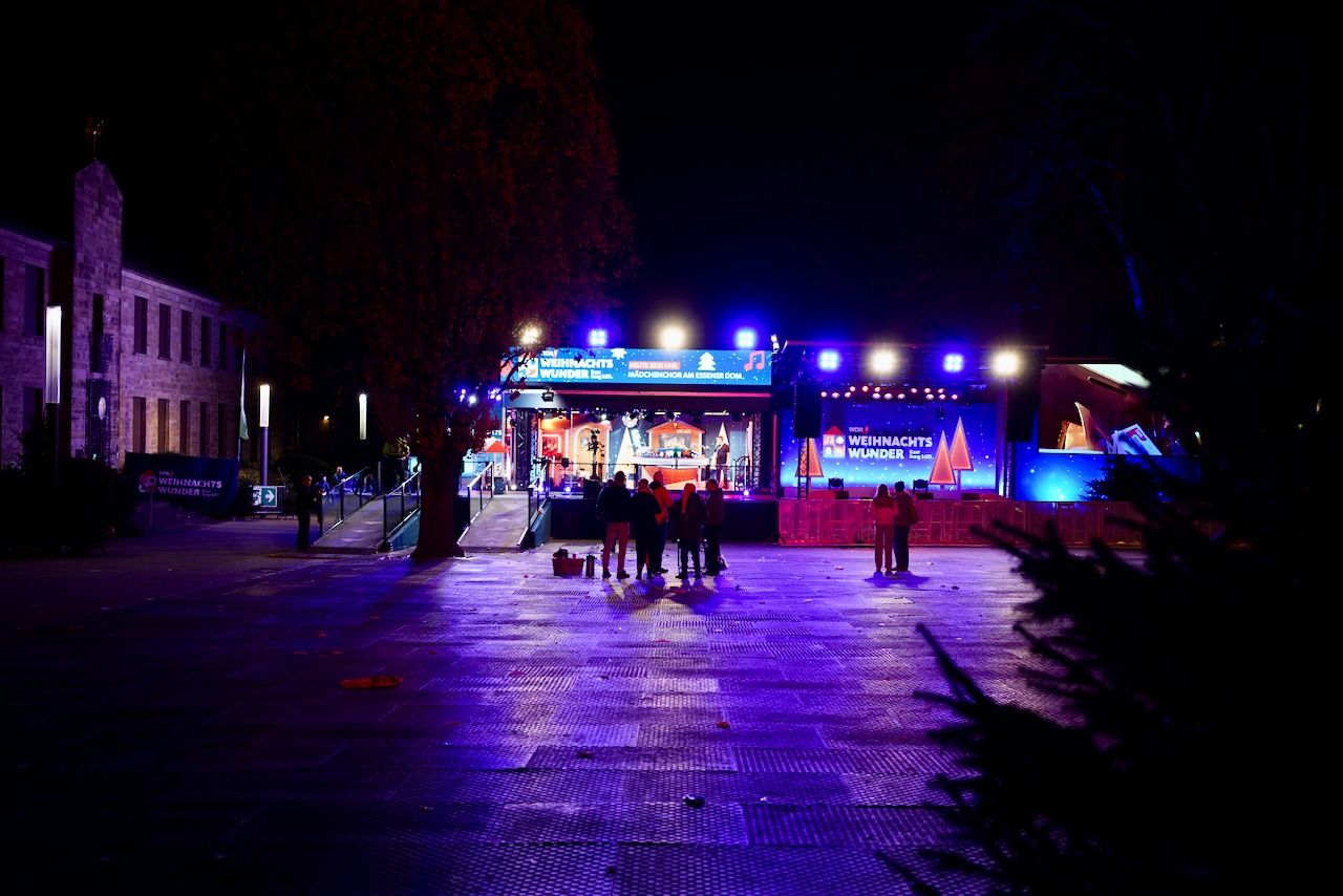 Am Dienstagmorgen, 16.12.2025, machte sich unsere Schulgemeinschaft in aller Frühe auf den Weg zum Burgplatz. Um 06.10 Uhr waren die Schulen in Trägerschaft des Bistums Essen im Rahmen des WDR 2-Weihnachtswunders live auf Sendung.