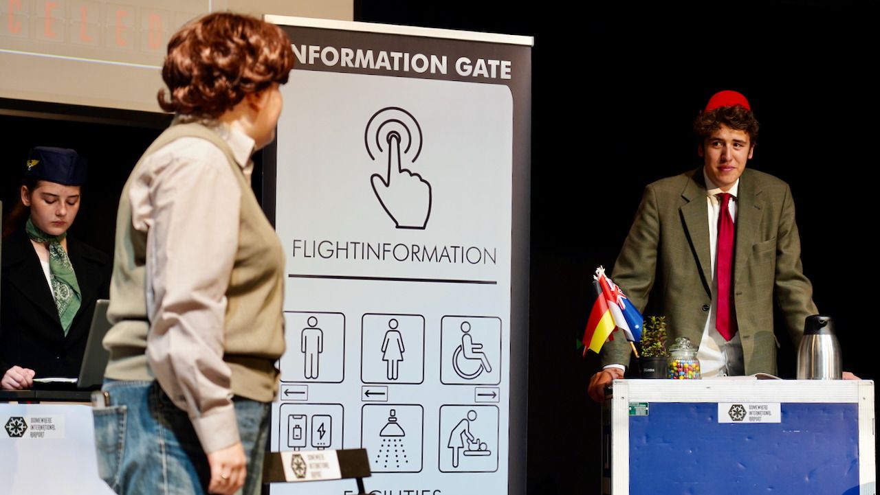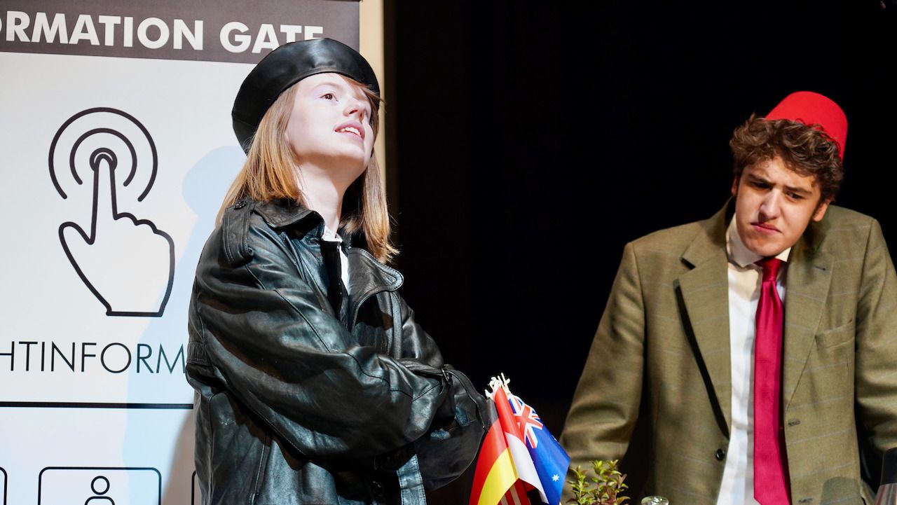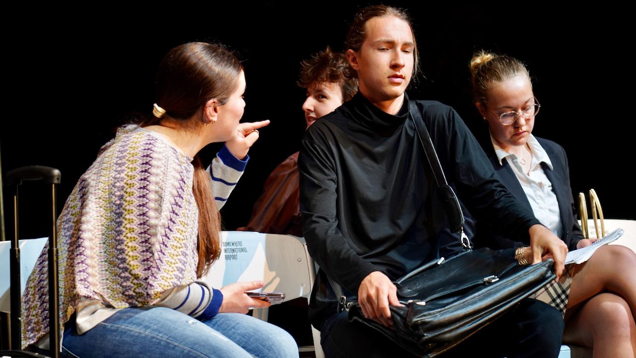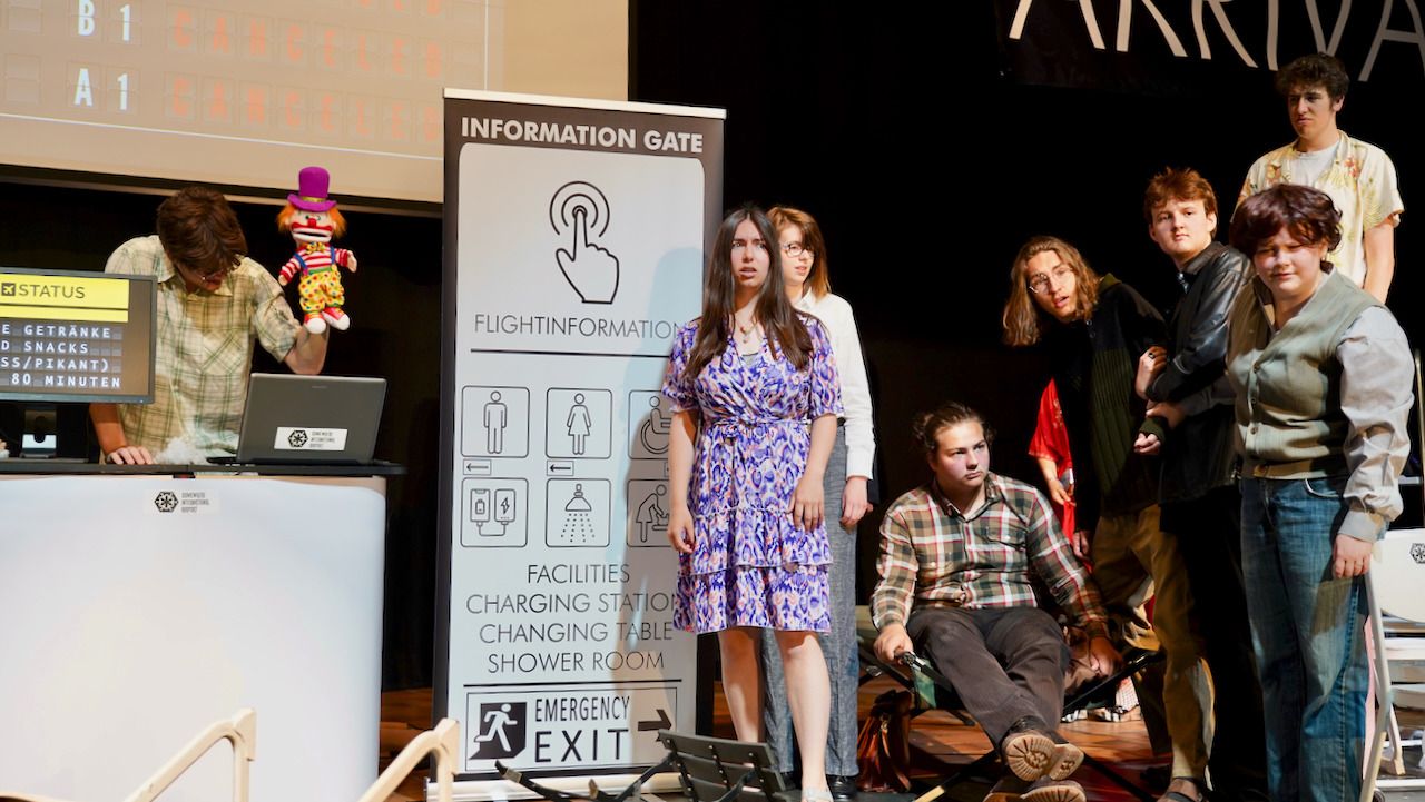 Am gestrigen 9. Juni feierte der Literaturkurs der Stufe 12 die Premiere seiner diesjährigen Inszenierung. Beinahe 200 Zuschauer:innen ließen sich schnell von der gesellschaftskritischen Kömodie mit Tiefgang, wie eine Zuschauerin das Stück charakterisierte, gefangen nehmen und verwöhnten die glänzend aufgelegte Schauspieltruppe mit viel verdientem Szenen- und begeistertem Schlussapplaus.