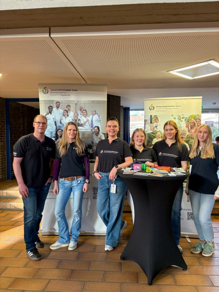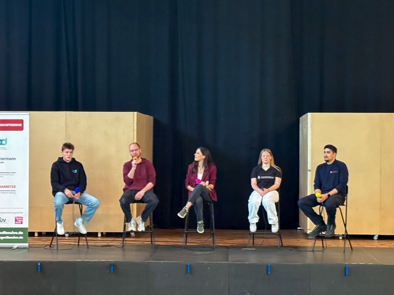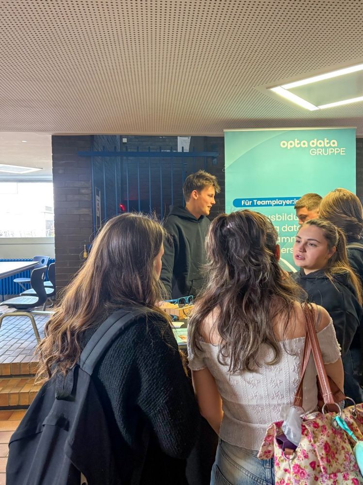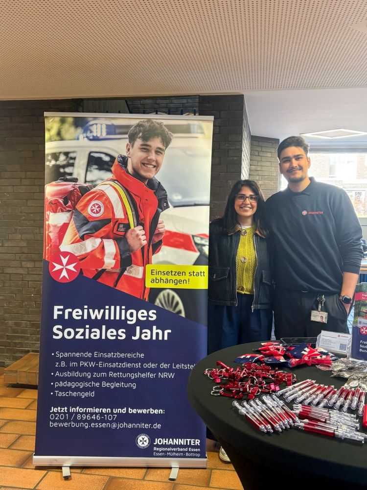 In der Talkrunde standen dabei ganz konkrete Fragen im Mittelpunkt: Welche Aufgaben übernimmt man bei opta data im Bereich Abrechnung und Digitalisierung? Wie gestaltet sich der Arbeitsalltag im Rettungsdienst bei den Johannitern? Welche Spezialisierungen bietet die Ruhrlandklinik im Klinikbetrieb? Und welche Rolle spielt technische Beratung und Anpassung von Hilfsmitteln bei Luttermann? In der anschließenden Minibörse nutzten viele Schüler die Gelegenheit, diese Themen im persönlichen Gespräch zu vertiefen und individuelle Perspektiven auszuloten."