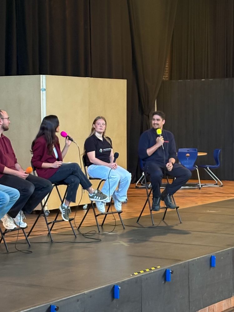 Am vergangenen Freitag war für die Jahrgangsstufe Q1 die Ausbildungsoffensive zu Gast am Stoppenberg. Das Format findet seit einigen Jahren in unserer Aula statt und bietet unseren Schülerinnen und Schülern Einblicke in die vielfältigen Möglichkeiten, die man mit einer Ausbildung oder einem dualen Studium nach dem Abitur hat.